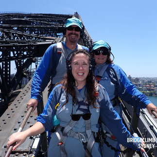 Friday 13th. Yes. I chose that date. Bridge Climb day. Quite probably for the first time ever Mr B was not allowed to calm his nerves with a drink. First thing they do when you get there is a breathalyser test. Zero alcohol tolerance. A pre climb questionnaire filled in had alerted them to my wonky knees, but they assured me that there would be a chance to test my physical climbing ability prior to the ascent. A superbly organised climbing structure and climbing apparatus/body rigs meant we felt safe enough. We each tested the clip on rigs and reassured ourselves we couldn`t fall. All was good. We tested the ladders, not too high, good, tested the mesh walkways, yep, that was doable. And then it was our turn. Everyone wears headphones to hear the guide, and only she can hear you, and trust me, that was. awesome news. We clipped on, Mrs B at the front behind the guide, oh bother, now I had no choice but to move fast and to not hold up the group. Not for anything was I going to be the reason the group moved slowly. And we were off. Through the door, into a room, and once clipped and no going back, the enormity of that sodding bridge, and what it entailed, slapped you firmly across the face. If I used the F word once, i used it several times. Frogs were everywhere. There was a frog on the bridge, the handrail, the ground below us, on the cars, the low sided handrails, even the wind was froggy !! ` The first bit is the worst `my bunny butt !!! From the offset, the path is narrow, mostly open sided, mesh floor, hand rail on the left side only with your right hand guiding your life line alongst the narrow metal wire. Its also breezy. And did I mention that it is a long long long way!!? All my walking practise over Blackpool Pier ? absolute zero use. I have never been as utterly terrified in my entire life!! Its froggy high, froggy narrow, got frog all to hang on to and did i mention that it is froggy high!! That blissful bit of torture lasted around two weeks. Once my hand had secured itself into the grip of a thousand nations never to uncoil, the delightful guide yelled, that`s the easy bit over !! sorry, but wtf? easy bit ? Stairs next. Three flights worth. The sort of stairs that go in side tall hollow structures, that you look at and think nope, not for me! Nope, Up we go. Bunny balls and buttocks joined the party of frogs as once more I climbed. We reached the top and I breathed once more...until the guide says, we call this next bit the squeeze... I do hope you are kidding me? Nope, she wasn`t, between the rails, under the girders and along the frog laden path that joyously spanned more road. And just to add insult to injury, she then ever so kindly added " we are nearly at the ladders"... Well just look at those cute little ladders, exactly the same as the ones we practised on in the practise room, just 3 times higher, and 3 times as many, and over fresh air so that you can take in the lovely views. Chimps, chocolate, bananas and a whole other host of random objects now invade my thoughts and my mouth as I endeavour to give the frogs a rest. I solemnly declare that If I ever mention doing something so utterly stupid again, you may section me!! Finally, and not a moment too soon we stepped out onto the bridge itself. and this my bunny friends was the easy part. The steps are very wide, you cannot see over the edge, you cannot see the road below your feet. You can however see the whole of Sydney and the Opera House. The view is worth a million frogs. Cue music and fireworks, we`ve done it and I have the photo to prove it. I could tell you all about the numerous steps, ladders and other challenges that we met on the way down, but my favourite bit of the whole climb was the amazing ladder to nowhere, this gorgeous cute little ladder, connecting the lower path to the upper path. It really was the most beautiful steel mesh rung ladder you have ever seen and as the leader of the group, I, Mrs bunny, had the delight of standing at the bottom of this ladder for around 15 mins waiting for the rest of the group to slowly descend the ladders from hell behind me. The view below me through the wide mesh rungs was incredible. Absolutely nothing whatsoever obscured my view to the ground, and to my left I could see forever, such a shame my right hand view into infinity was partially obscured by train tracks. I forgot, must tell you, that ladder had special effects as well, every time the train and the numerous carriages went over, it shook like a jelly. It was a great feeling trying to hang on. 3 hours of hell later, and I am at last back on terrified firma. Having shared with both Mr B and little B the most incredible views of Sydney, I am