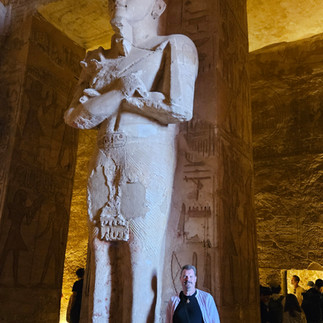 Fours hours later, we arrived at Abu Simbel Car park. Were we the first? Not even close. Shy of 100 or more vehicles were already parked. Tickets in hand we walked to what appeared to be a huge rocky hill around which was a well trodden path. Rounding a corner, the sight of Abu Simbel very nearly stops you in your tracks. This is possibly the most famous sight in Egypt, the Four Kings and Queens of Egypt sat guarding the temple. If you wish to be super picky, you could say 3.5, as one statue has suffered during the passage of time, but considering the age, and the fact that this stupendous edifice was moved onto higher ground, this marvel of ancient engineering is a sight to behold. As a group we wanted to gaze in wonder, take photos and generally just gawp, but Mish Mish, ever observant, hustled us towards the temple, telling us to hurry and go now, before the guides and their tour groups finish their spiel. I for one, did not know there was an inside! I thought, from my limited knowledge, that Abu Simbel was famous because of the four exterior statues that guarded a singular statue on which the sun shone on a specific date. Slap my bunny butt and stick a dunce hat on my head! The interior of Abu Simbel just beggars belief. Statues of incredible height and detail. Walls inscribed with magnificent hieroglyphics and colour. Rooms, floors, ,chambers, and yes, a room, right at the back of the temple, with not one, but four statues, each depicting a different god. The sun shines on these four individual statues one by one as the sun changes position on one particular day per year. Given that the ancient Egyptians got it to perfectly align on the actual day of the winter (summer?) solstice yet the modern architects who moved the temple to higher ground managed to achieve the same, but one day late, is testament to the phenomenally accurate astronomical studies of the ancients.