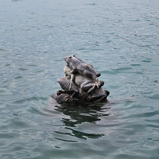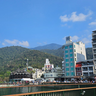 Another must see destination is the Sun Moon Lake, situated inland this is a lakeside destination much the same as visiting the Lake District in the UK. With the most favourable weather following us, we arrived for 2 and half days of perfect relaxation. Our room was out of town and situated in the woods. A small group of a cross between Anderson shelters/caravans/oversized glamping pods all immaculate, and so so cosy were to be found among the cement base clearing in the woods. The hospitality from the moment we landed was so lovely. They were so upset we had walked from the station, "why didnt you message and ask us?" The room was perfect, and even had the Disney Channel woo hoo. We walked into the small town of Ita Thao, and wow, we found people, lots and lots of people! We also found one very large and very beautiful blue lake, and a whole host of street foods. There were many different options and ways to ride on the lake, small ferry, larger ferry, taxi boat, tourist boat, stand up paddle board, or electric pedaloes or manual push pedal ones. Naturally Mr Bunny chose the electric pedalo, not.....and so he and little miss bunny had the pleasure of `rowing` me around the Lake. Was so relaxing, lol. I did try, but wonky knees here has great difficulty with anything bike related. Happy to say a work out was had by two out of three bunnies. Street food had to be tried as we had worked up quite the appetite. Potato with spices on sticks, vegetable pancake like rolls, sausages, and so much more. The following day, Mr Bunny and I made it quite clear to little b, that we had no desire to go riding bikes round the lake to see yet another temple, nor were we overly keen to ride the waves on any kind of boat. Little Bunny took herself off on her own adventure, see miss.tiff.travels whilst Mr B and I hired ourselves an electric tandem bike. Oh the fun we had scooting the round the lake edge on an electric powered bike. The following day, with little b having zero inclination to hire yet another push bike, Mr B on our second hired electric bike, ferried little B to the 9 frogs viewpoint, then came back for me. At the lake edge is a frog statue of 9 frogs one on top of the other, they are a very cute depth marker for the lake. This second day was a Monday and all the crowds had vanished. Very much a weekend destination it would seem. Once again we troughed our way around the street food stalls. Very much some of the best food we had in Taiwan.